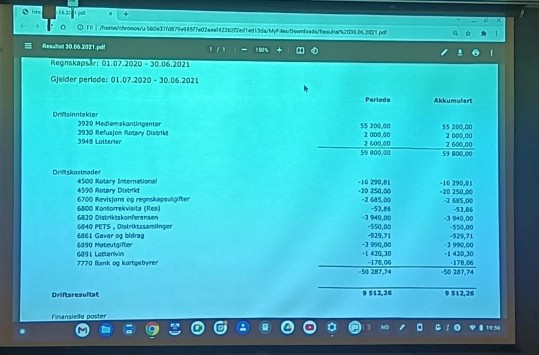 Kjell L. Pedersen la fram regnskap for 2020-2021. Videre hadde han og Geir Gisnås med seg inntrykk fra seminar i Bodø.